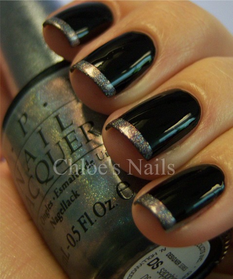 Morning :) Here is the mani I did using the OPI DS Sapphire, that I posted about yesterday. I started with a base of Wet n' Wild Black, and a coat of SV
